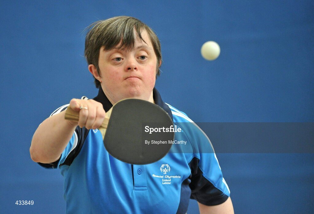 11 June 2010; Anne Hickey, from Rathnapish, Co. Carlow, in action during the Table Tennis event during the second day of the 2010 Special Olympics Ireland Games. Tailteann Centre, Mary Immaculate Centre, Limerick. Picture credit: Stephen McCarthy / SPORTSFILE