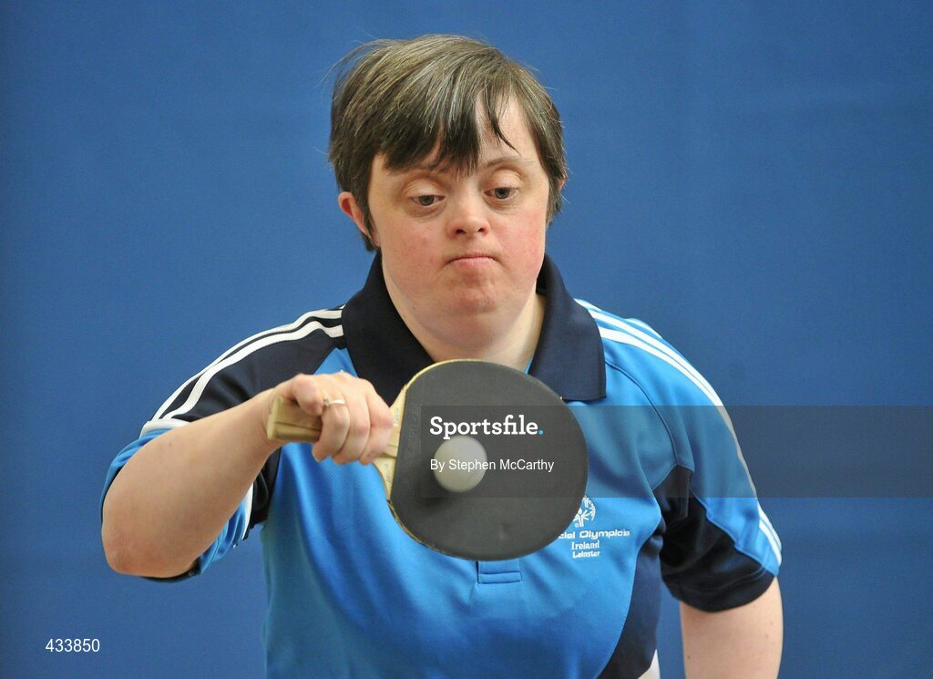 11 June 2010; Anne Hickey, from Rathnapish, Co. Carlow, in action during the Table Tennis event during the second day of the 2010 Special Olympics Ireland Games. Tailteann Centre, Mary Immaculate Centre, Limerick. Picture credit: Stephen McCarthy / SPORTSFILE