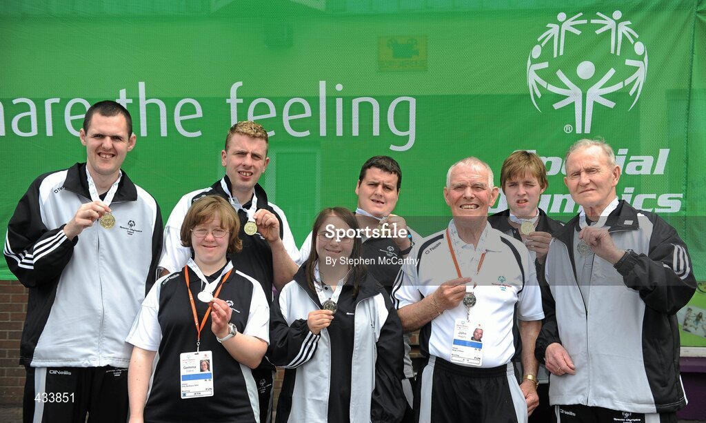 11 June 2010; Ulster Region medal winning athletes, back from left, Barry Wright, from Lurgan, Armagh, Ciaran Mallon, Newry, Down, Ryan Burton, Foyle, Derry, Gerard Breslin, from Foyle, Derry, with, front from left, Gemma Collins, Newry, Down, Jill McCallion, Foyle, Derry, John Hegarty, Ballybofey, Donegal, and Jackie Gilmour, Foyle, Derry, following the Team Bowling events during the second day of the 2010 Special Olympics Ireland Games. Funworld, Ennis Road, Limerick. Picture credit: Stephen McCarthy / SPORTSFILE