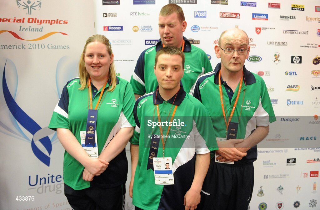 11 June 2010; Connaught Team 4, from left, Caoimhe Dunne, Colin Kelly, Brendan Hehir and Damien McDonnell, back, after receiving their medals for placing tied 6th place in the Team Bowling event during the second day of the 2010 Special Olympics Ireland Games. Funworld, Ennis Road, Limerick. Picture credit: Stephen McCarthy / SPORTSFILE