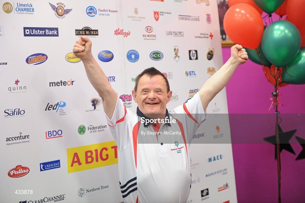 11 June 2010; Bobby Power, from Waterford, during the medal cermony at the Bowling event during the second day of the 2010 Special Olympics Ireland Games. Funworld, Ennis Road, Limerick. Picture credit: Stephen McCarthy / SPORTSFILE