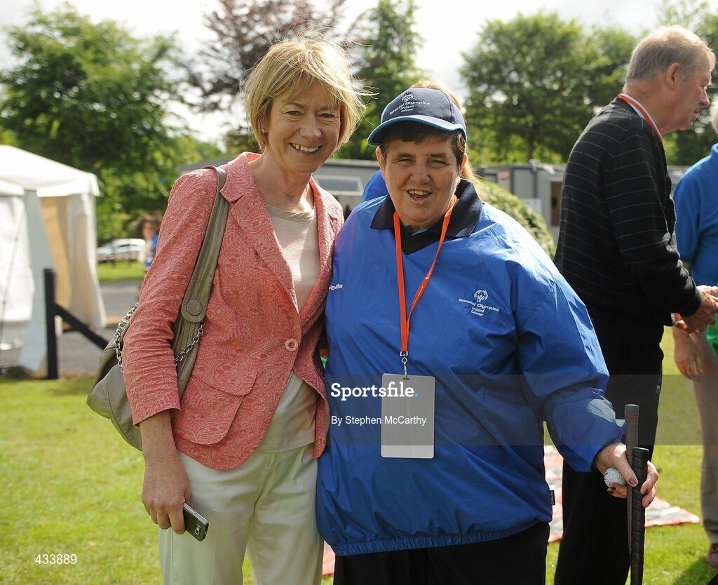 11 June 2010; Mary Davis, Managing Director of Special Olympics Europe / Eurasia, and athlete Nacy O'Sullivan, from Killaloe, Co. Clare, during the Pitch & Putt event during the second day of the 2010 Special Olympics Ireland Games. Murroe, Limerick. Picture credit: Stephen McCarthy / SPORTSFILE