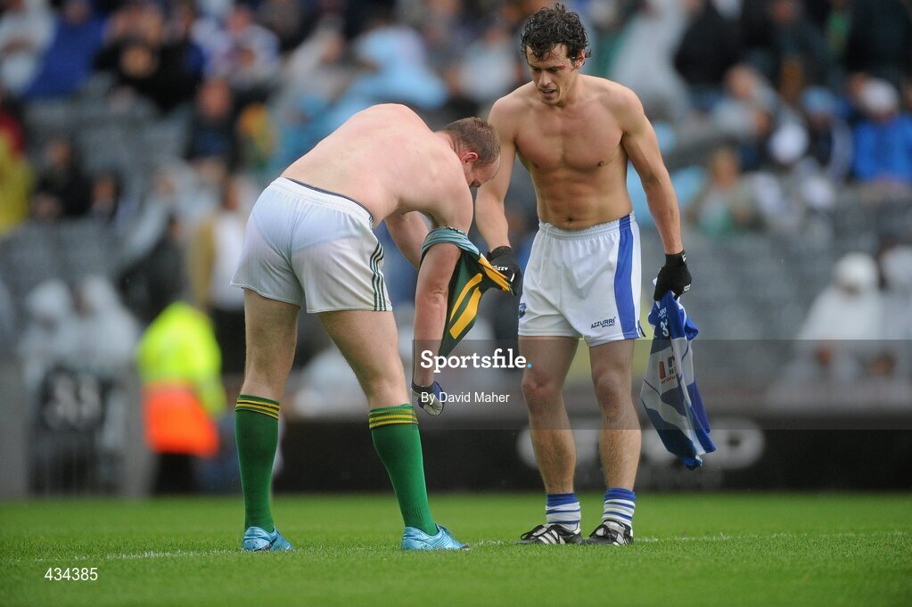 13 June 2010; Joe Sheridan, Meath, exchanges jerseys with Laois captain Padraig McMahon at the end of the game. Leinster GAA Football Senior Championship Quarter-Final, Meath v Laois, Croke Park, Dublin. Picture credit: David Maher / SPORTSFILE