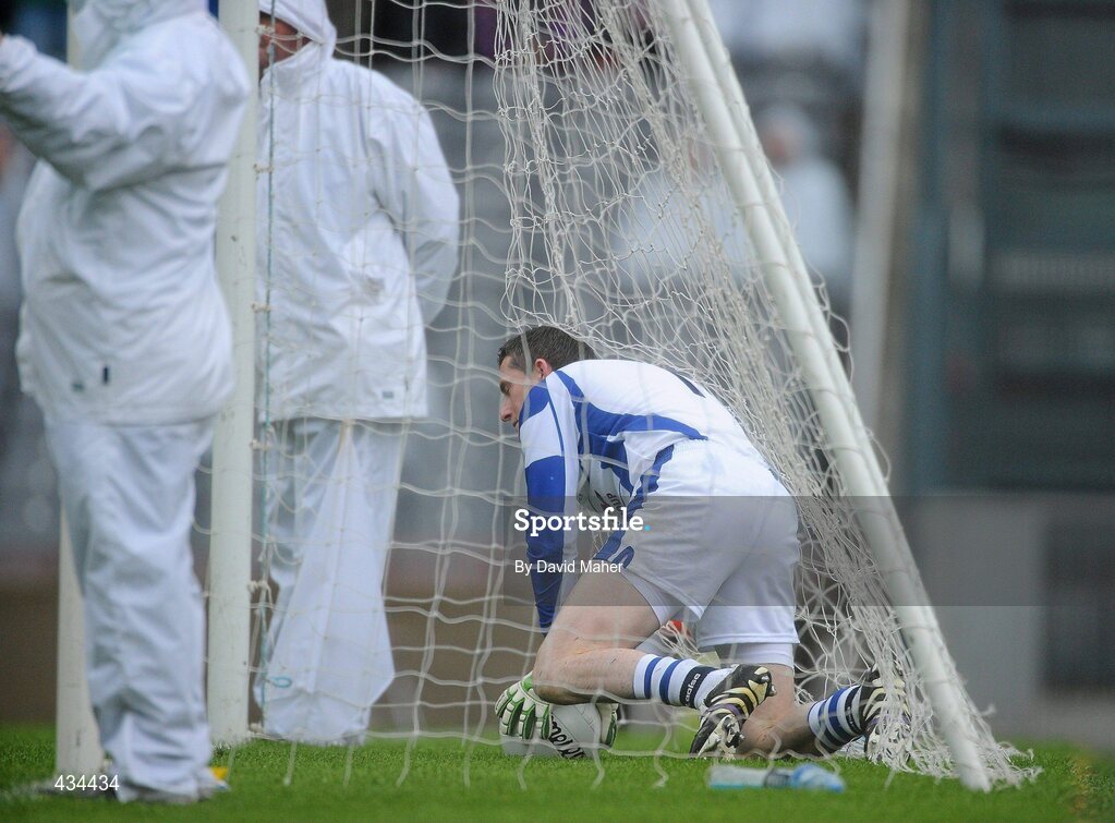13 June 2010; Laois goalkeeper Michael Nolan picks the ball out from the back of the net after letting the ball slip to give Meath their second goal. Leinster GAA Football Senior Championship Quarter-Final, Meath v Laois, Croke Park, Dublin. Picture credit: David Maher / SPORTSFILE