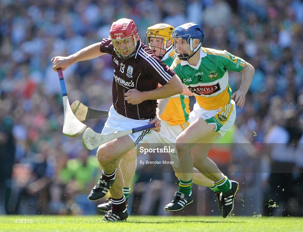 20 June 2010; Iarla Tannian, Galway, in action against James Rigney and David Franks, right, Offaly. Leinster GAA Hurling Senior Championship Semi-Final, Galway v Offaly, Croke Park, Dublin. Picture credit: Brendan Moran / SPORTSFILE