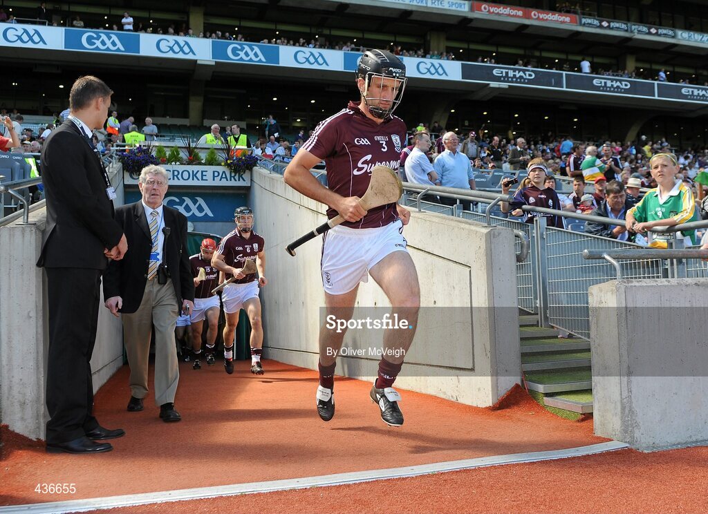 20 June 2010; Shane Cavanagh, Galway, leads his team onto the field. Leinster GAA Hurling Senior Championship Semi-Final, Galway v Offaly, Croke Park, Dublin. Picture credit: Oliver McVeigh / SPORTSFILE