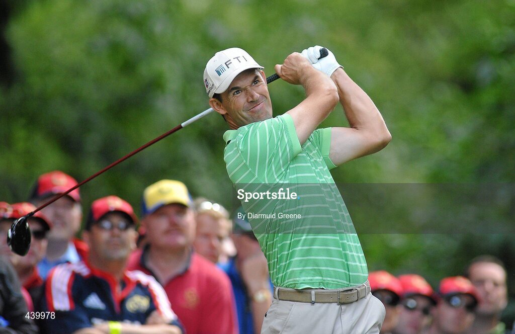 5 July 2010; Padraig Harrington watches his drive from the 14th tee box during the JP McManus Invitational Pro-Am. Adare Manor, Adare, Co. Limerick. Picture credit: Diarmuid Greene / SPORTSFILE