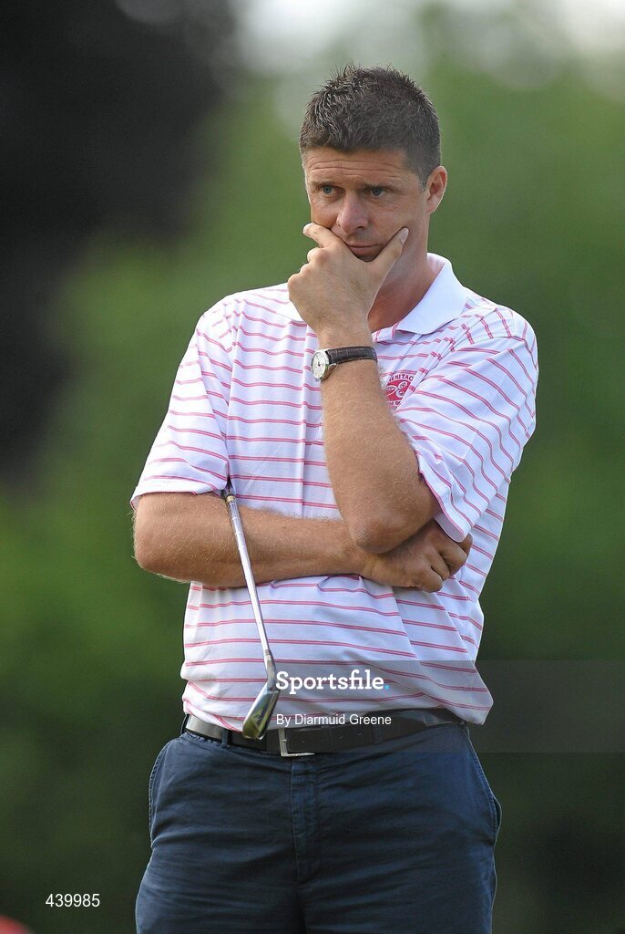 5 July 2010; Sunderland AFC Chairman Niall Quinn lines up a putt on the 14th green during the JP McManus Invitational Pro-Am. Adare Manor, Adare, Co. Limerick. Picture credit: Diarmuid Greene / SPORTSFILE