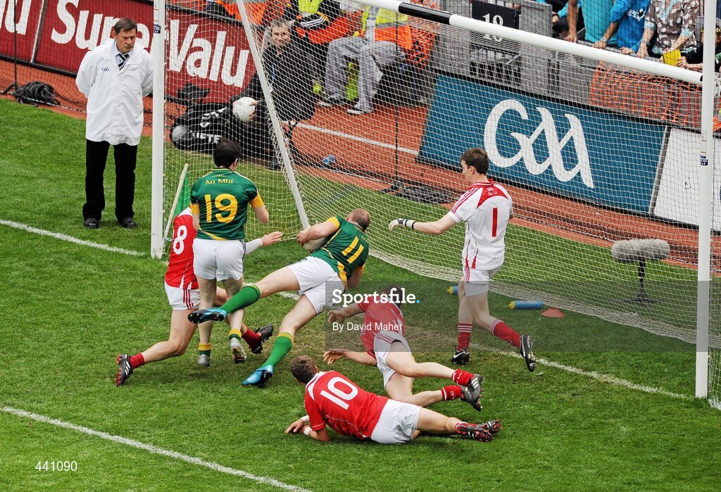 11 July 2010; Joe Sheridan, 11, Meath, beats Louth players, left to right, Paddy Keenan, Andy McDonnell, Dessie Finnegan and goalkeeper Neil Gallagher, on his way to scoring a late goal to win the Leinster title. Leinster GAA Football Senior Championship Final, Meath v Louth, Croke Park, Dublin. Picture credit: David Maher / SPORTSFILE