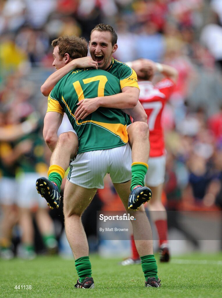 11 July 2010; Graham Reilly and Gary O'Brien, 17, celebrate after the final whistle. Leinster GAA Football Senior Championship Final, Meath v Louth, Croke Park, Dublin. Picture credit: Matt Browne / SPORTSFILE