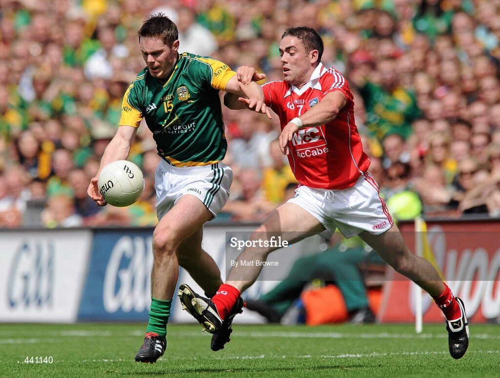 11 July 2010; Stephen Bray, Meath, in action against John O'Brien, Louth. Leinster GAA Football Senior Championship Final, Meath v Louth, Croke Park, Dublin. Picture credit: Matt Browne / SPORTSFILE