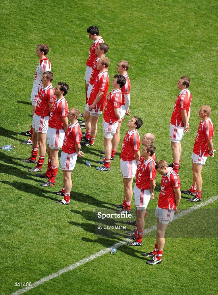 11 July 2010; Louth players during the playing of Amhran na bhFiann. Leinster GAA Football Senior Championship Final, Meath v Louth, Croke Park, Dublin. Picture credit: David Maher / SPORTSFILE