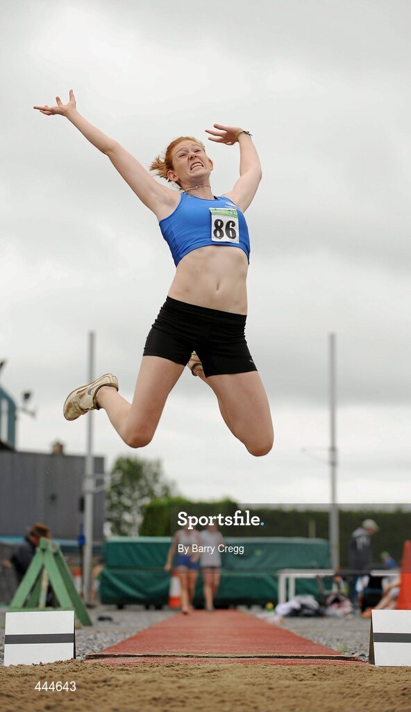 24 July 2010; Sinead O'Connor, Tralee Harriers, in action during the U-19 Girl's Long Jump at the Woodie's DIY Juvenile Track and Field Championships. Tullamore Harriers Stadium, Tullamore, Co. Offaly. Picture credit: Barry Cregg / SPORTSFILE