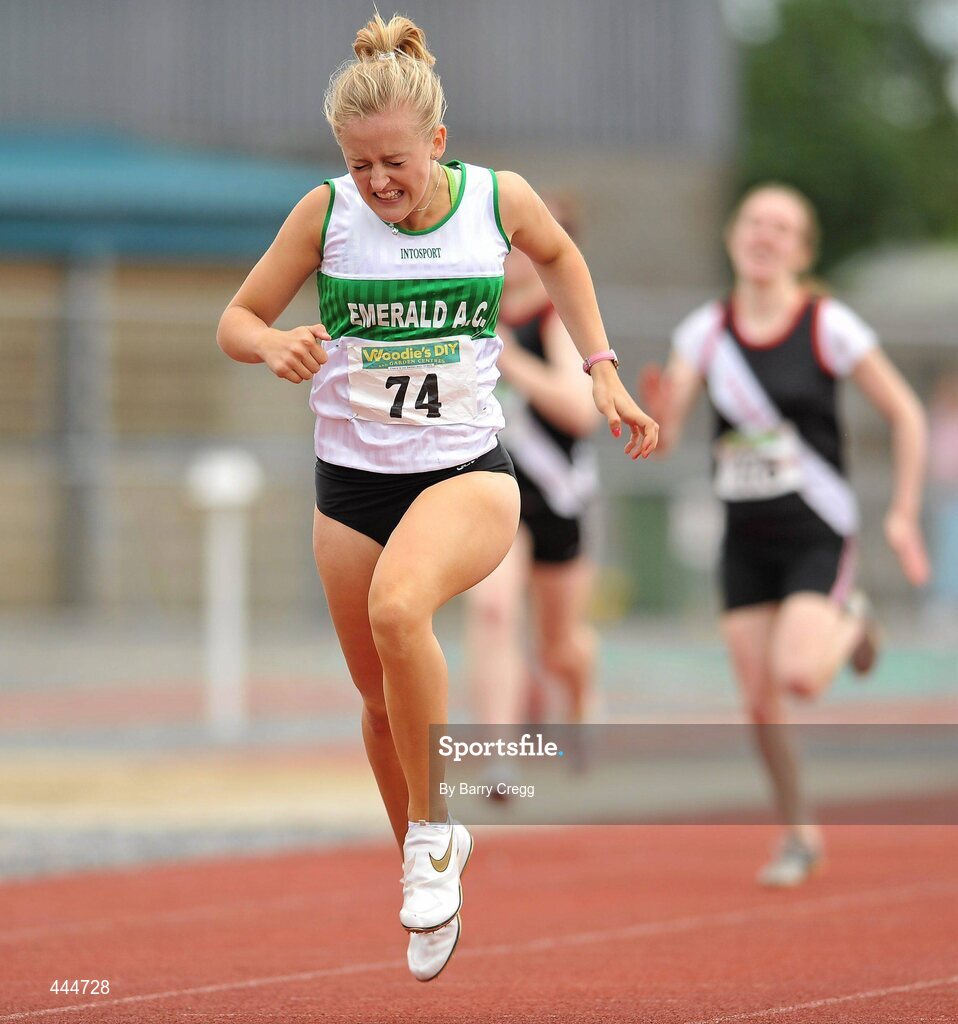 24 July 2010; Sarah Lavin, Emerald, winning the U-17 Girl's 200m Final at the Woodie's DIY Juvenile Track and Field Championships. Tullamore Harriers Stadium, Tullamore, Co. Offaly. Picture credit: Barry Cregg / SPORTSFILE
