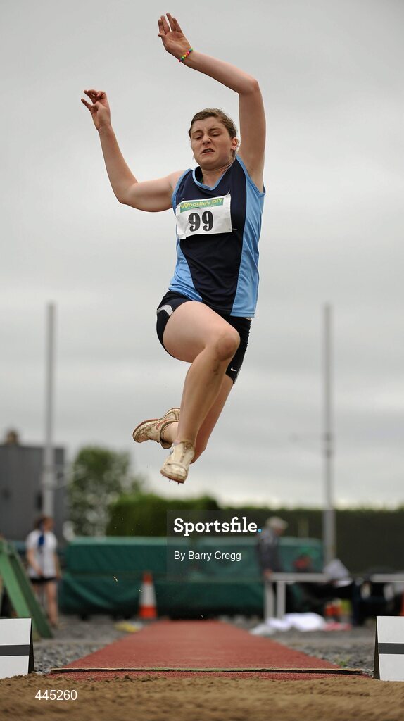 24 July 2010; Aoife Bartley, Carrick-on-Suir, in action during the U-19 Girl's Long Jump at the Woodie's DIY Juvenile Track and Field Championships. Tullamore Harriers Stadium, Tullamore, Co. Offaly. Picture credit: Barry Cregg / SPORTSFILE