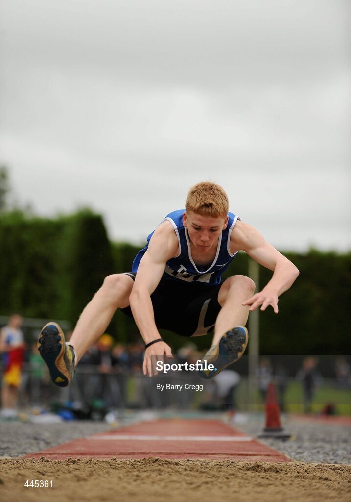 24 July 2010; Eoin O' Carroll, Tralee Harriers, in action during the U-16 Boy's Triple Jump at the Woodie's DIY Juvenile Track and Field Championships. Tullamore Harriers Stadium, Tullamore, Co. Offaly. Picture credit: Barry Cregg / SPORTSFILE