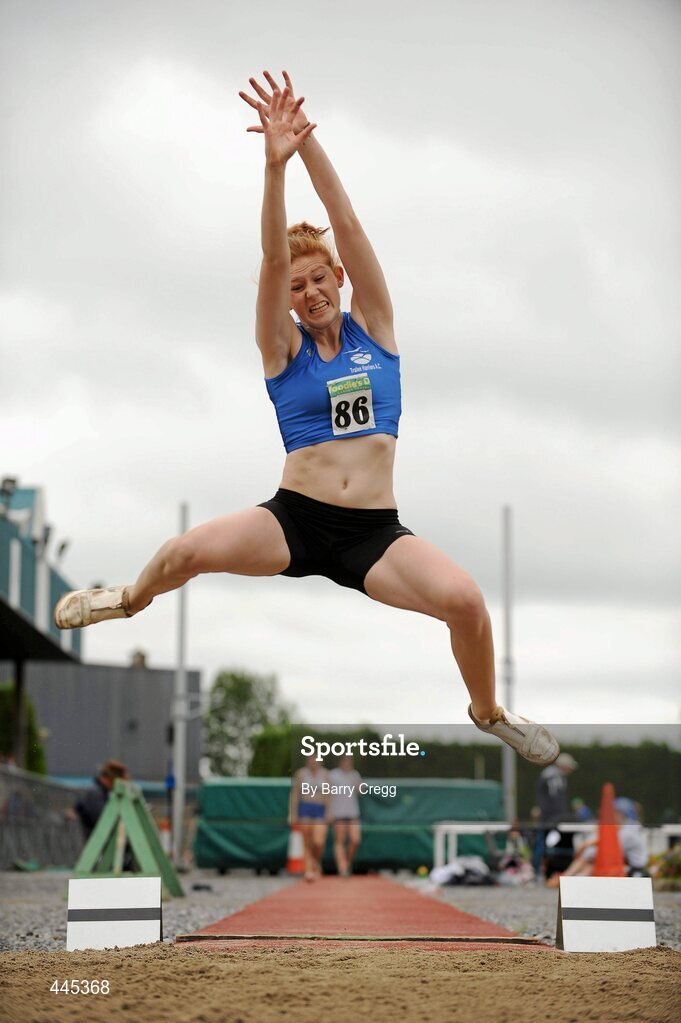24 July 2010; Sinead O' Connor, Tralee Harriers, in action during the U-18 Girl's Long Jump at the Woodie's DIY Juvenile Track and Field Championships. Tullamore Harriers Stadium, Tullamore, Co. Offaly. Picture credit: Barry Cregg / SPORTSFILE