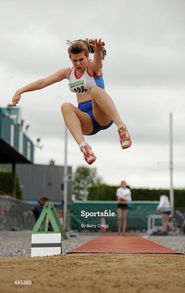 24 July 2010; Catriona Corcoran, Bree, in action during the U-18 Girl's Long Jump at the Woodie's DIY Juvenile Track and Field Championships. Tullamore Harriers Stadium, Tullamore, Co. Offaly. Picture credit: Barry Cregg / SPORTSFILE