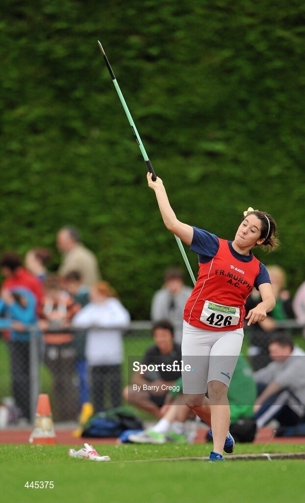 24 July 2010; Leah Kelly, Fr. Murphy, in action during the U -15 Girl's Javelin at the Woodie's DIY Juvenile Track and Field Championships. Tullamore Harriers Stadium, Tullamore, Co. Offaly. Picture credit: Barry Cregg / SPORTSFILE