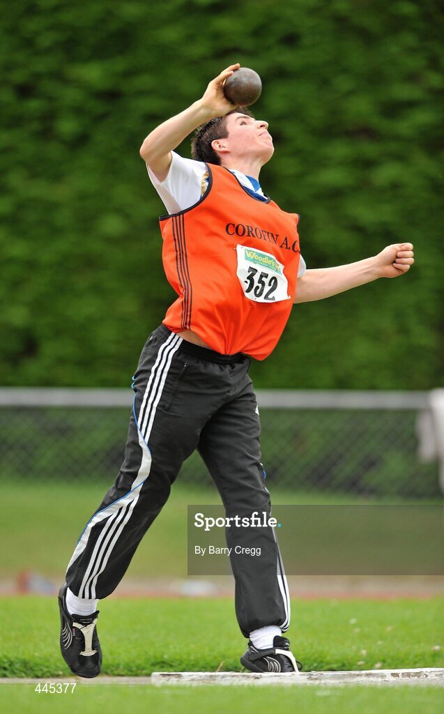 24 July 2010; Martin Farragher, Corofin, in action during the U-17 Boy's Shot Putt at the Woodie's DIY Juvenile Track and Field Championships. Tullamore Harriers Stadium, Tullamore, Co. Offaly. Picture credit: Barry Cregg / SPORTSFILE
