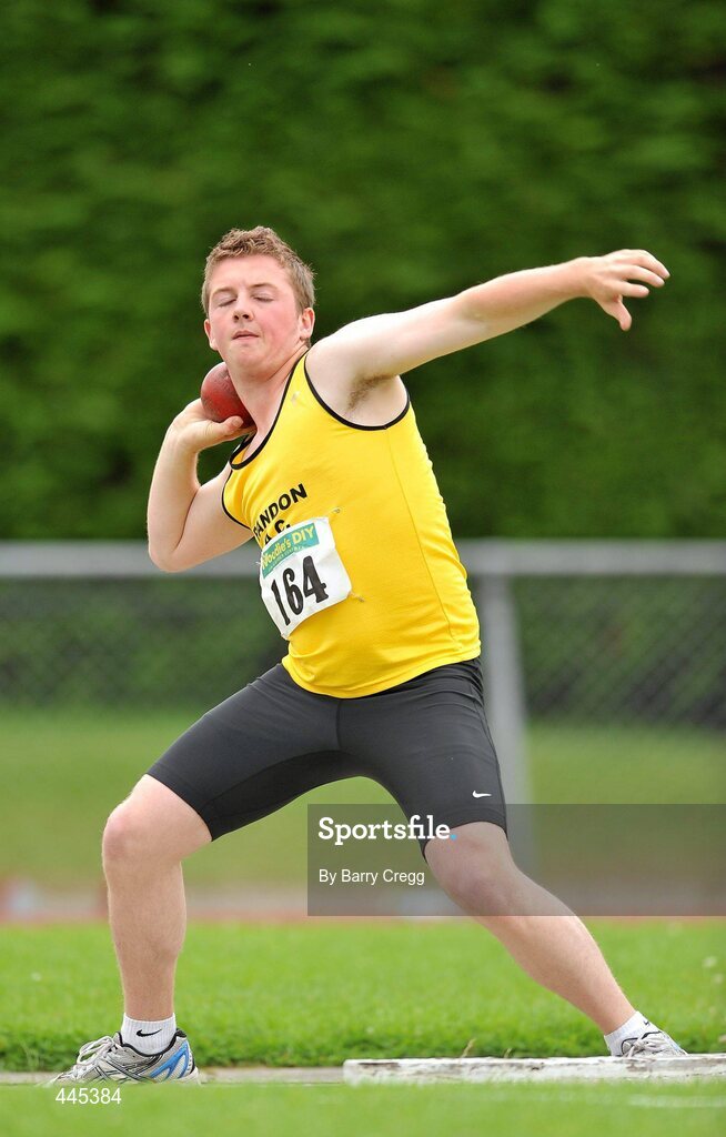 24 July 2010; Daire Walsh, Bandon, in action during the U-17 Boy's Shot Putt at the Woodie's DIY Juvenile Track and Field Championships. Tullamore Harriers Stadium, Tullamore, Co. Offaly. Picture credit: Barry Cregg / SPORTSFILE