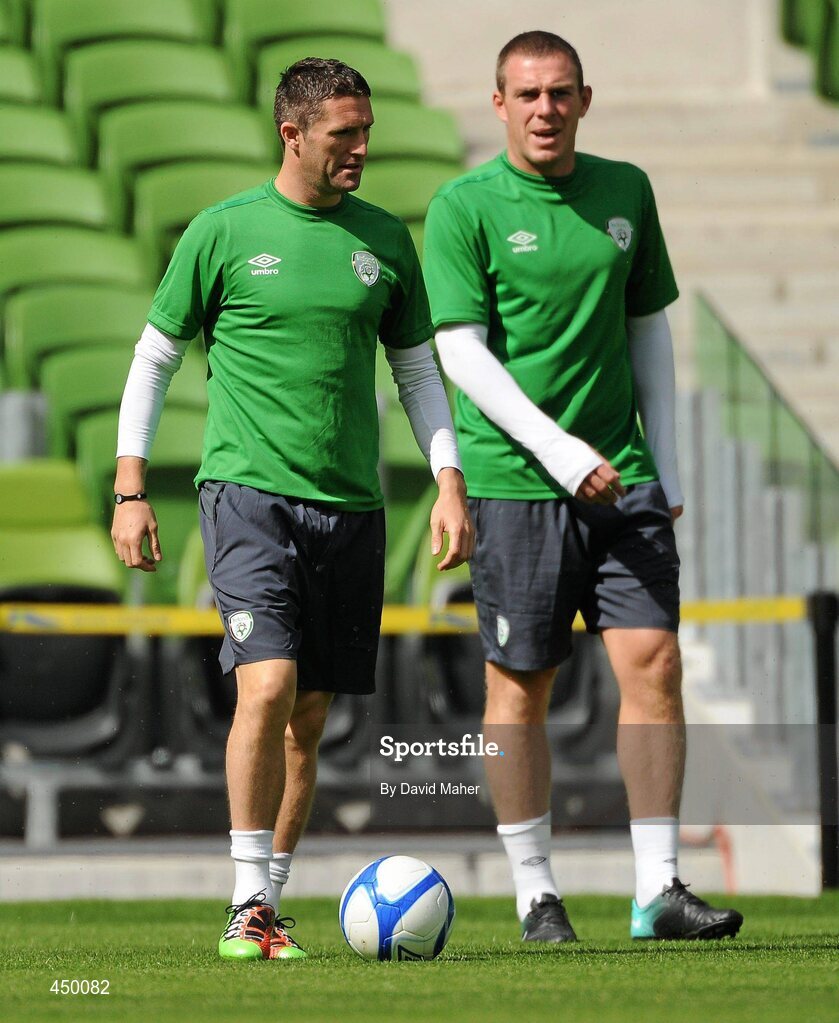 10 August 2010; Republic of Ireland captain Robbie Keane with Richard Dunne during squad training ahead of their international friendly against Argentina on Wednesday. Republic of Ireland squad training, Aviva Stadium, Lansdowne Road, Dublin. Picture credit: David Maher / SPORTSFILE