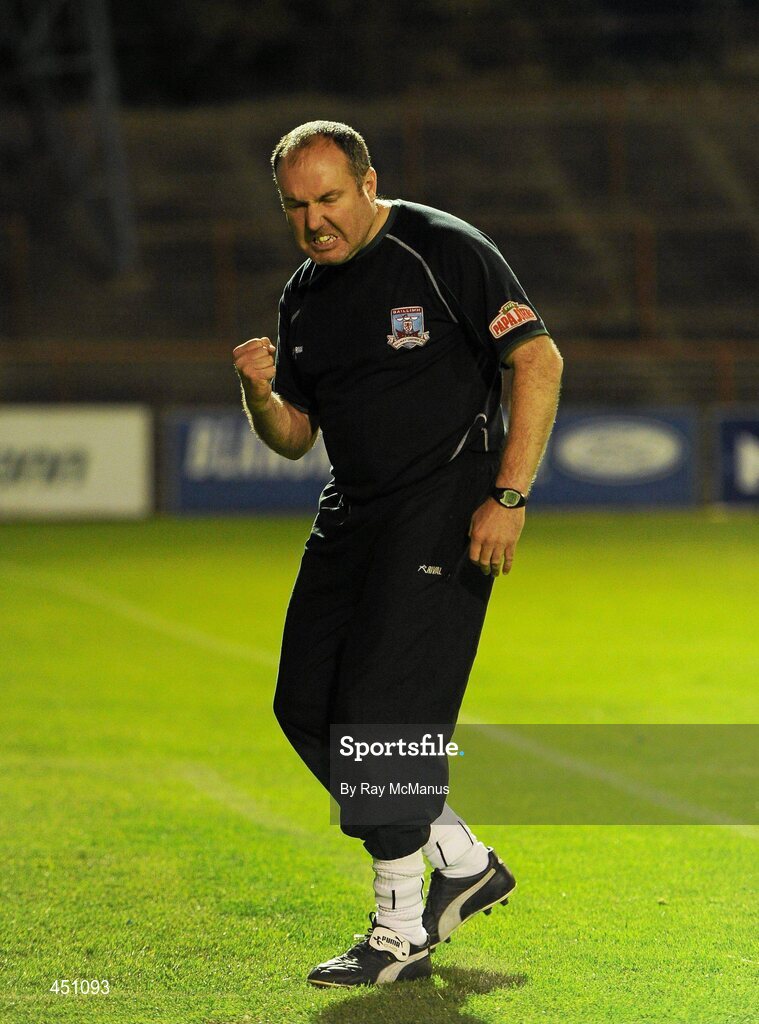 13 August 2010; Galway United manager Sean Connor celebrates his side's victory at the final whistle. Airtricity League Premier Division, Bohemians v Galway United, Dalymount Park, Dublin. Picture credit: Ray McManus / SPORTSFILE