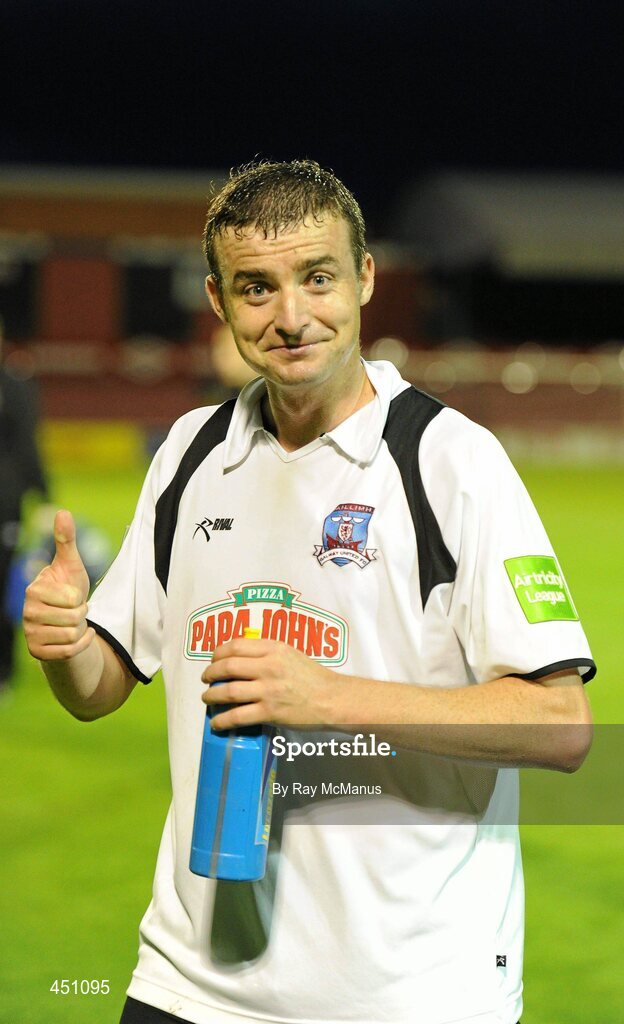 13 August 2010; Derek O'Brien, Galway United, celebrates their side's victory. Airtricity League Premier Division, Bohemians v Galway United, Dalymount Park, Dublin. Picture credit: Ray McManus / SPORTSFILE
