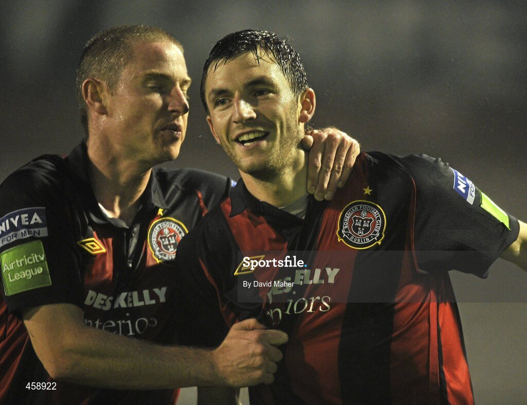 13 September 2010; Bohemians' Killian Brennan, right, celebrates after scoring his side's first goal with team-mate Glenn Cronin. Airtricity League Premier Division, Bohemians v Drogheda United, Dalymount Park, Dublin. Picture credit: David Maher / SPORTSFILE