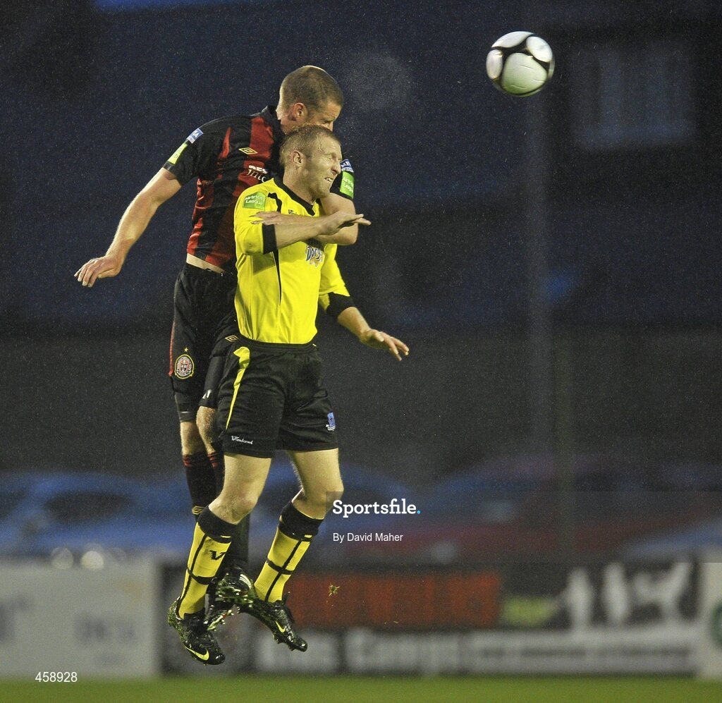 13 September 2010; Jason McGuinness, Bohemians, in action against John Flood, Drogheda United. Airtricity League Premier Division, Bohemians v Drogheda United, Dalymount Park, Dublin. Picture credit: David Maher / SPORTSFILE