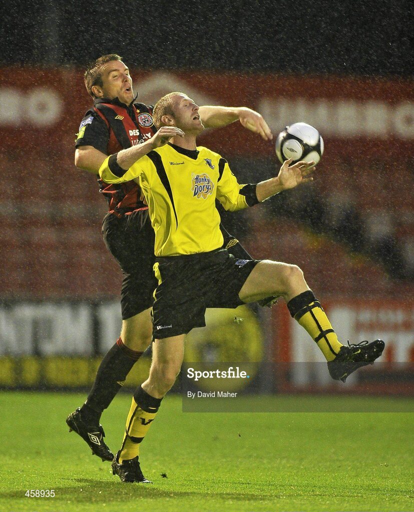 13 September 2010; Brian Shelley, Bohemians, in action against John Flood, Drogheda United. Airtricity League Premier Division, Bohemians v Drogheda United, Dalymount Park, Dublin. Picture credit: David Maher / SPORTSFILE