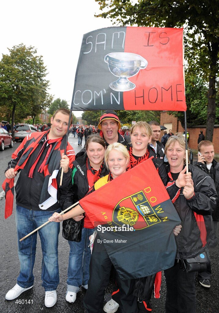 19 September 2010; Johnny O'Connor, Julieanne Madine, Damen Traynor, Jennifer Fitzsimmons, Kyla Traynor and Denise Traynor, from Downpatrick, supporting Down at the GAA Football All-Ireland Championship Finals, Croke Park, Dublin. Picture credit: Dave Maher / SPORTSFILE