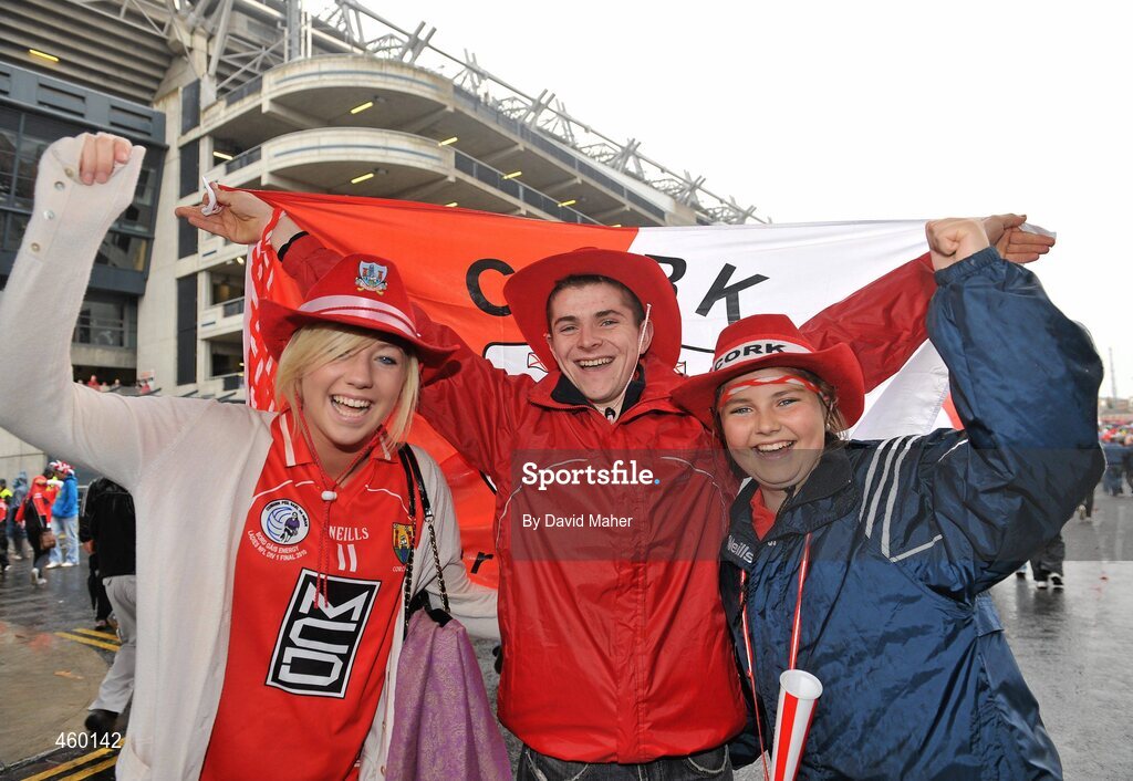 19 September 2010; Robyn Wallace, left, Vinny Grimes and Emily Fitzpatrick, all from Mallow, Co. Cork, at the GAA Football All-Ireland Championship Finals, Croke Park, Dublin. Picture credit: David Maher / SPORTSFILE
