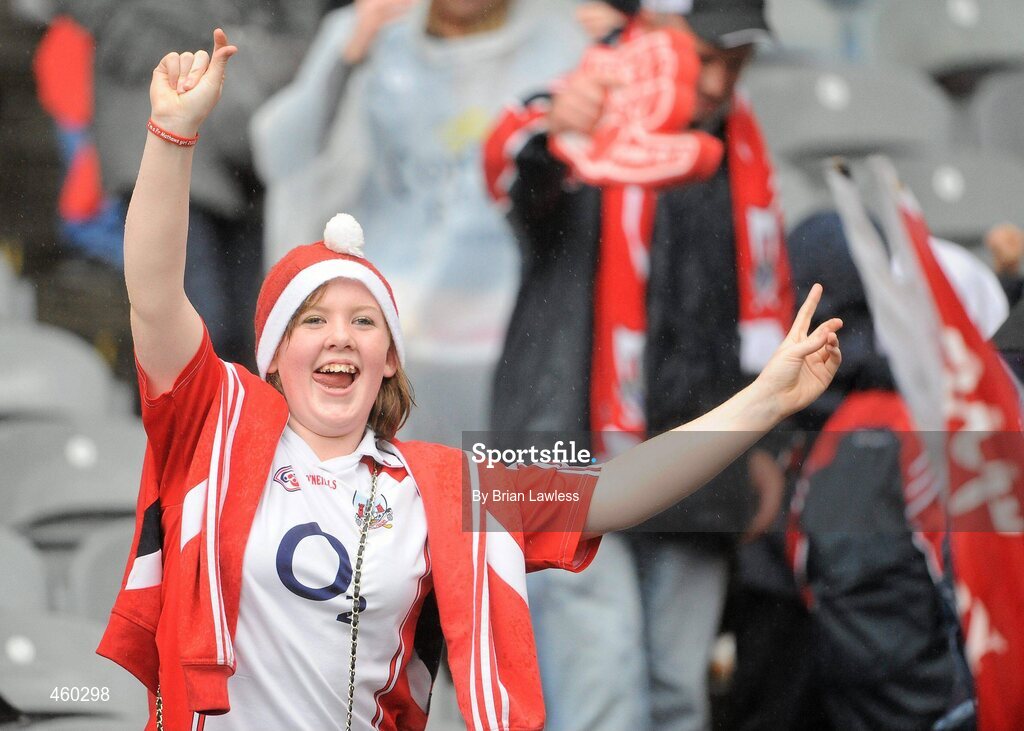 19 September 2010; A Cork fan celebrates after the match. GAA Football All-Ireland Senior Championship Final, Down v Cork, Croke Park, Dublin. Picture credit: Brian Lawless / SPORTSFILE