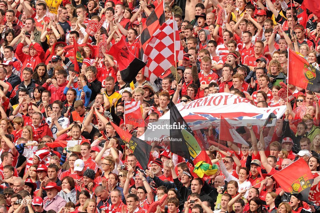 19 September 2010; Cork and Down supporters on Hill 16 before the game. GAA Football All-Ireland Championship Finals, Croke Park, Dublin. Picture credit: Ray McManus / SPORTSFILE