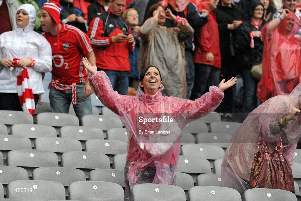 19 September 2010; Cork supporter Jeanie McDonald, left, from Glounthaune, celebrates after the match despite the heavy rain at the GAA Football All-Ireland Championship Finals, Croke Park, Dublin. Picture credit: Brian Lawless / SPORTSFILE
