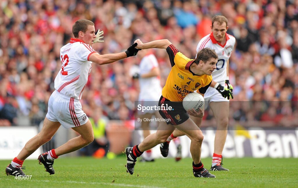 19 September 2010; Damian Rafferty, Down, in action against Patrick Kelly, Cork. GAA Football All-Ireland Senior Championship Final, Down v Cork, Croke Park, Dublin. Picture credit: Oliver McVeigh / SPORTSFILE
