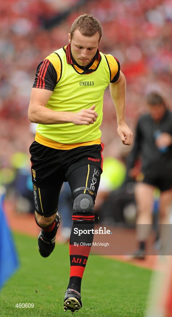 19 September 2010; Down captain Ambrose Rogers, who who failed to make the starting line-up for the final due to injury, warms up during the game. GAA Football All-Ireland Senior Championship Final, Down v Cork, Croke Park, Dublin. Picture credit: Oliver McVeigh / SPORTSFILE