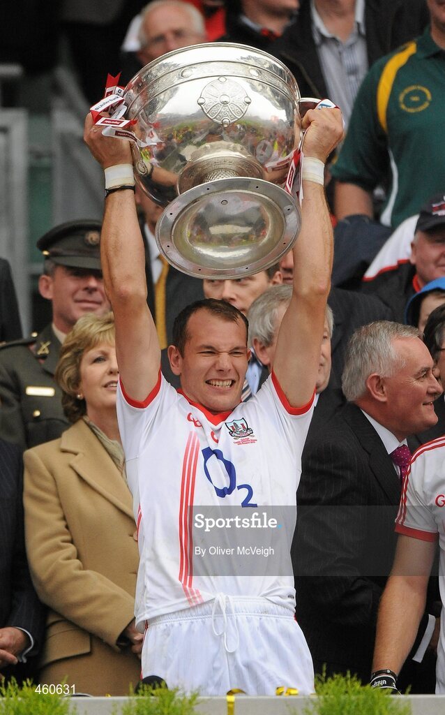 19 September 2010; Alan O'Connor, Cork, holds aloft the Sam Maguire cup. GAA Football All-Ireland Senior Championship Final, Down v Cork, Croke Park, Dublin. Picture credit: Oliver McVeigh / SPORTSFILE