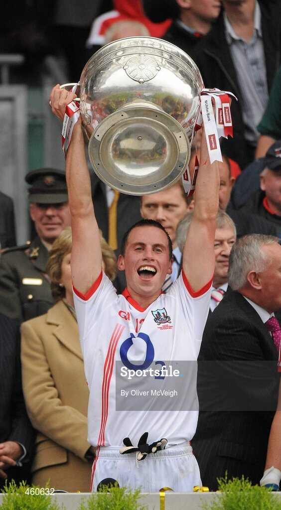 19 September 2010; Patrick Kelly, Cork, holds aloft the Sam Maguire cup. GAA Football All-Ireland Senior Championship Final, Down v Cork, Croke Park, Dublin. Picture credit: Oliver McVeigh / SPORTSFILE