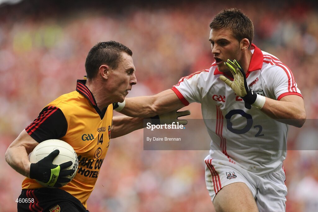 19 September 2010; John Clarke, Down, in action against Eoin Cadogan, Cork. GAA Football All-Ireland Senior Championship Final, Down v Cork, Croke Park, Dublin. Picture credit: Dáire Brennan / SPORTSFILE