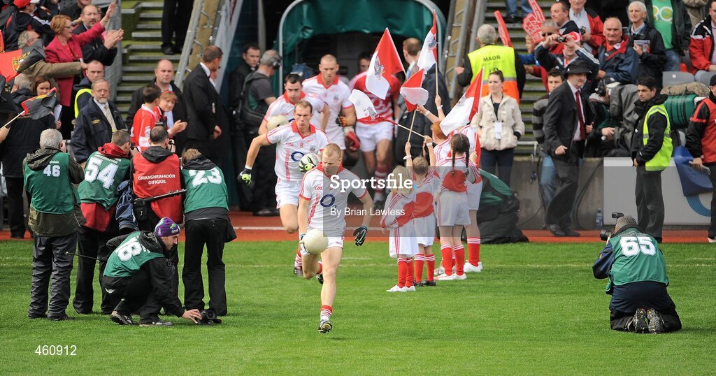 19 September 2010; Michael Shields, Cork, leads the team out for the start of the match. GAA Football All-Ireland Senior Championship Final, Down v Cork, Croke Park, Dublin. Picture credit: Brian Lawless / SPORTSFILE