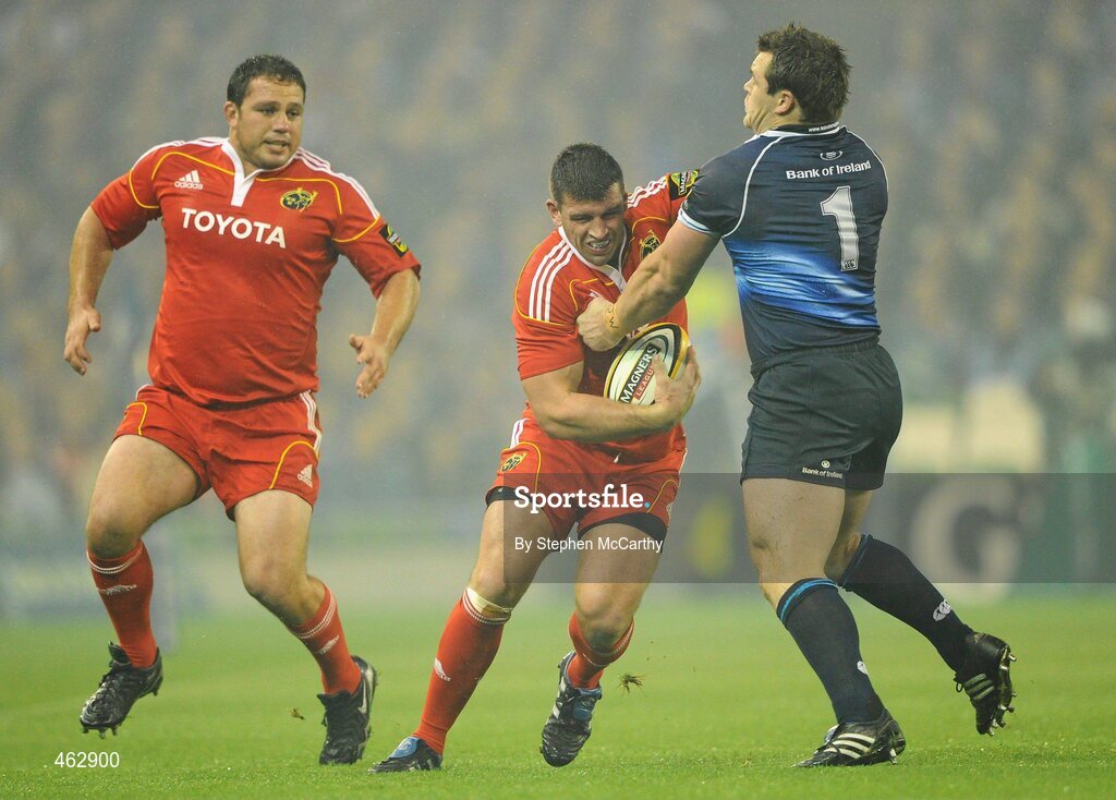 2 October 2010; Denis Leamy, Munster, in action against Cian Healy, Leinster. Celtic League, Leinster v Munster, Aviva Stadium, Lansdowne Road, Dublin. Picture credit: Stephen McCarthy / SPORTSFILE