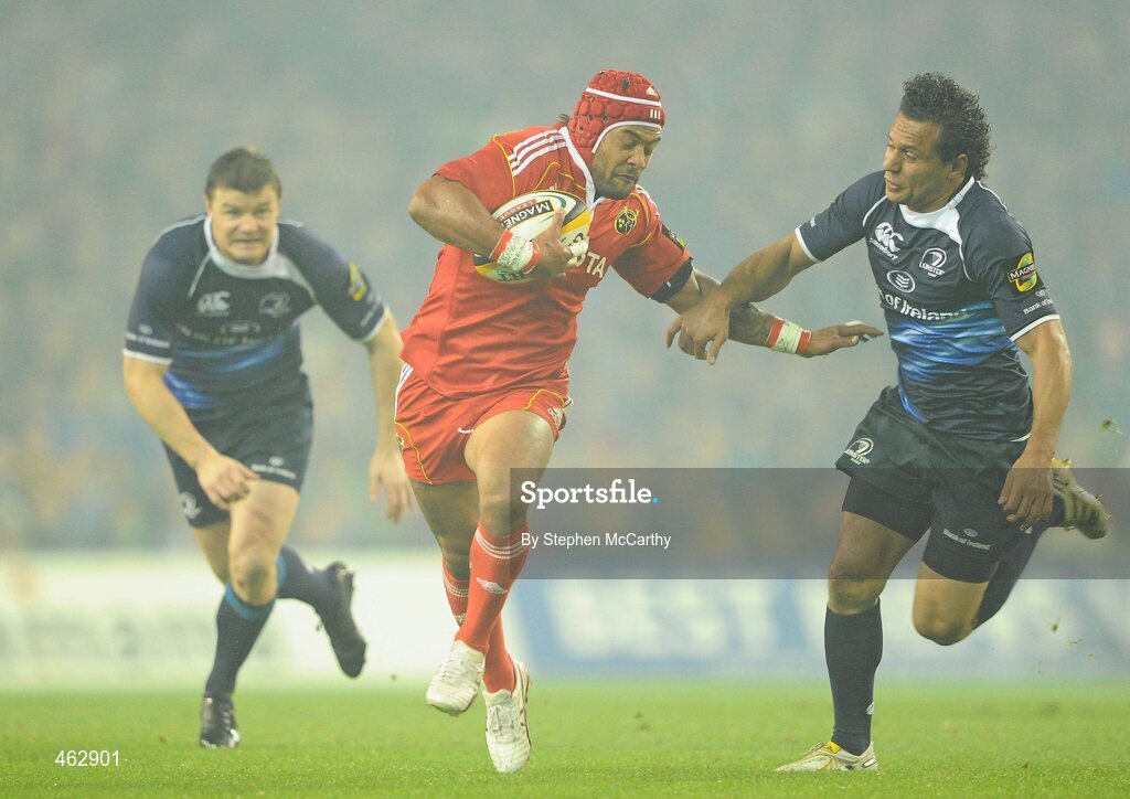 2 October 2010; Sam Tuitupou, Munster, in action against Brian O'Driscoll, left, and Isa Nacewa, Leinster. Celtic League, Leinster v Munster, Aviva Stadium, Lansdowne Road, Dublin. Picture credit: Stephen McCarthy / SPORTSFILE