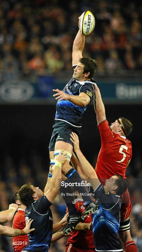 2 October 2010; Nathan Hines, Leinster, takes the ball in the lineout ahead of Donnacha Ryan, Munster. Celtic League, Leinster v Munster, Aviva Stadium, Lansdowne Road, Dublin. Picture credit: Stephen McCarthy / SPORTSFILE