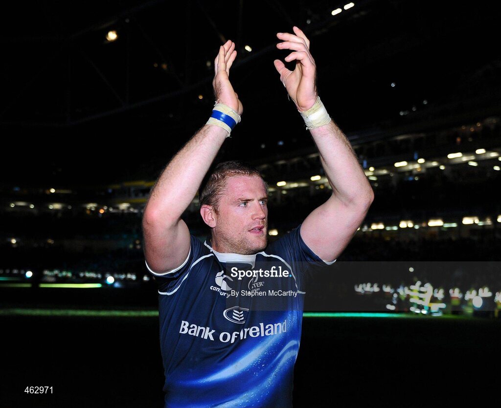 2 October 2010; Jamie Heaslip, Leinster, celebrates his side's victory after the game. Celtic League, Leinster v Munster, Aviva Stadium, Lansdowne Road, Dublin. Picture credit: Stephen McCarthy / SPORTSFILE