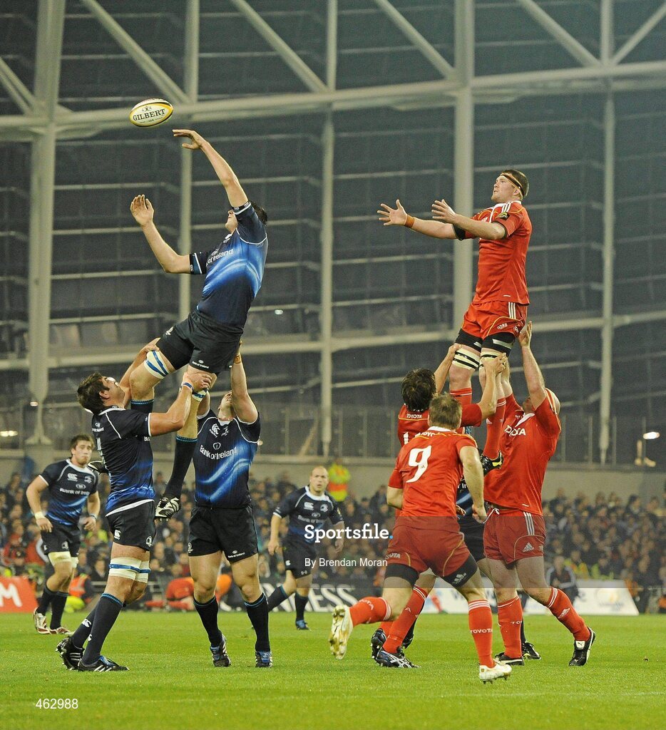 2 October 2010; Devin Toner, Leinster, takes the ball in a lineout ahead of Donnacha Ryan, Munster. Celtic League, Leinster v Munster, Aviva Stadium, Lansdowne Road, Dublin. Picture credit: Brendan Moran / SPORTSFILE