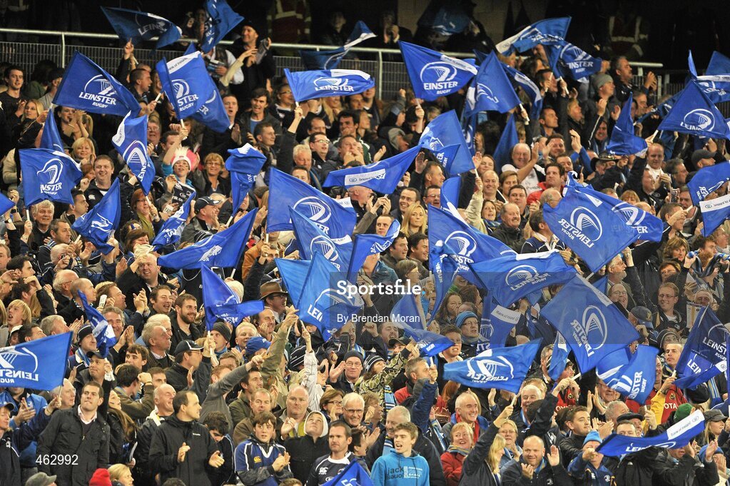 2 October 2010; Leinster supporters cheers on their side during the game. Celtic League, Leinster v Munster, Aviva Stadium, Lansdowne Road, Dublin. Picture credit: Brendan Moran / SPORTSFILE