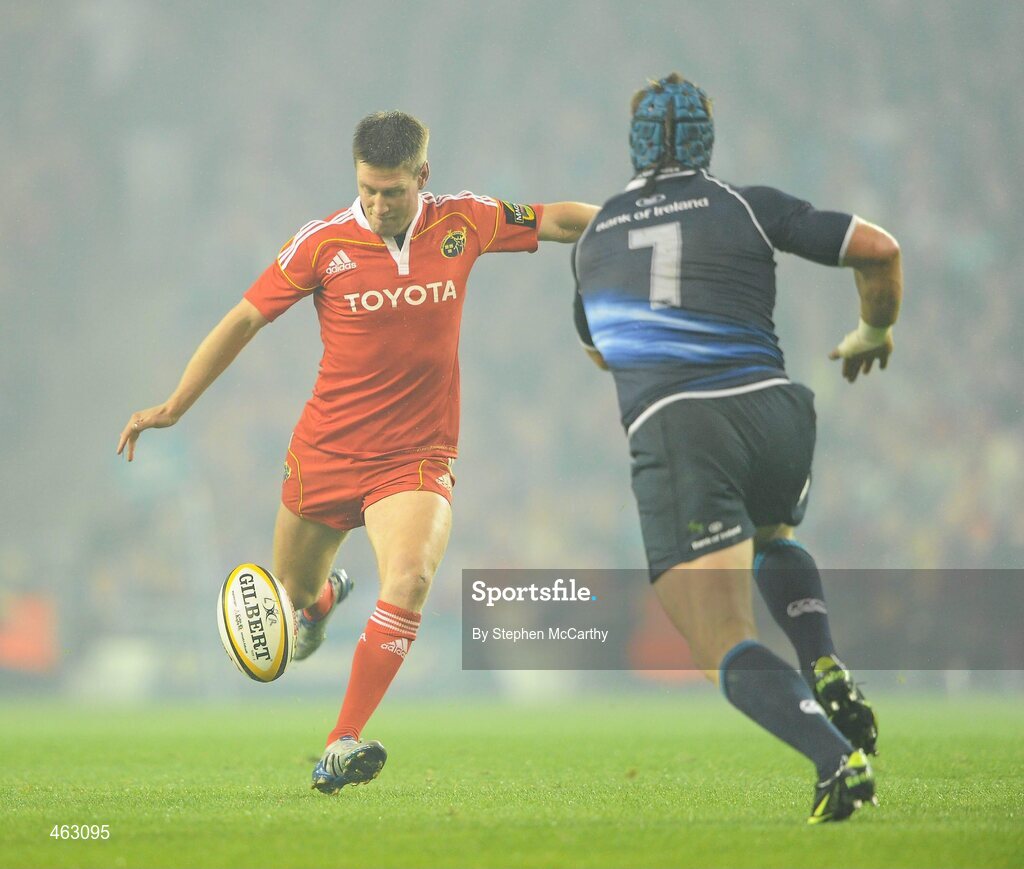 2 October 2010; Ronan O'Gara, Munster, attempts a drop goal. Celtic League, Leinster v Munster, Aviva Stadium, Lansdowne Road, Dublin. Picture credit: Stephen McCarthy / SPORTSFILE