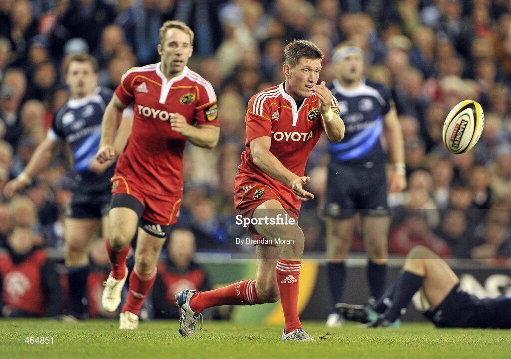 2 October 2010; Tomas O'leary, left, and Ronan O'Gara, Munster. Celtic League, Leinster v Munster, Aviva Stadium, Lansdowne Road, Dublin. Picture credit: Brendan Moran / SPORTSFILE